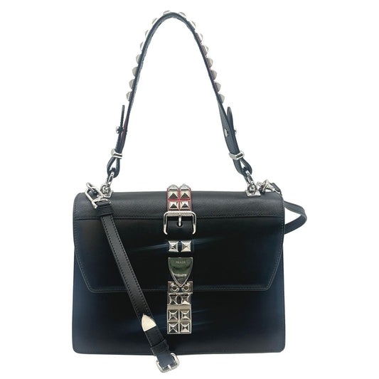 PRADA Elektra Calf Saffiano Leather Shoulder Bag Black