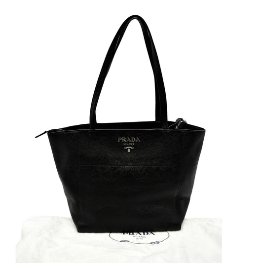 PRADA Vitello Daino Large leather Tote Shoulder Bag Black