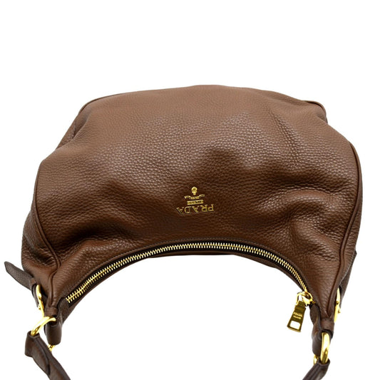 PRADA Logo Leather Hobo Bag Tan