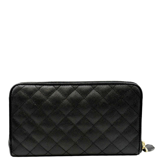 PRADA Zip Around Leather & Nylon Wallet Black