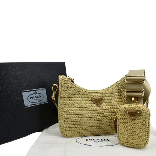 PRADA Re-Edition 2005 Raffia Shoulder Bag Beige
