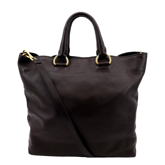 PRADA Vitello Daino Leather Tote Shoulder Bag Dark Brown