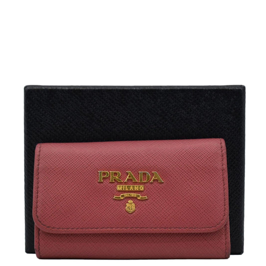 PRADA Saffiano Leather Card Holder Wallet Orange