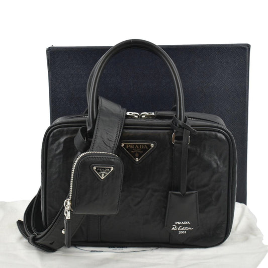 PRADA Re-edition 2001 Medium Antique Nappa Leather Shoulder Bag Black
