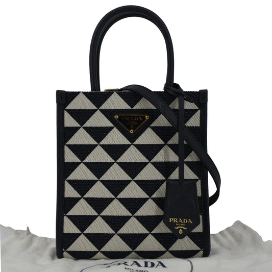 PRADA Triangolo Mini Jacquard Symbole Tote Crossbody Bag Navy Blue