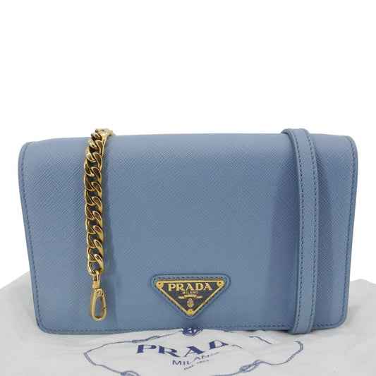 PRADA Bandoliera Flip Lock Saffiano Leather Chain Crossbody Bag Blue