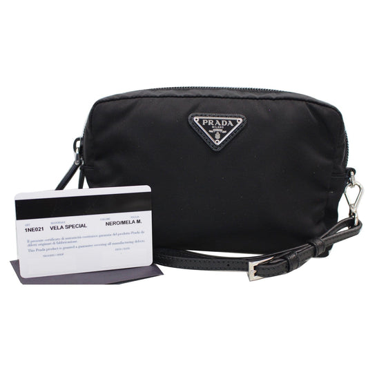PRADA Logo Round Edge Nylon Cosmetic Wristlet Pouch Black 1NE021