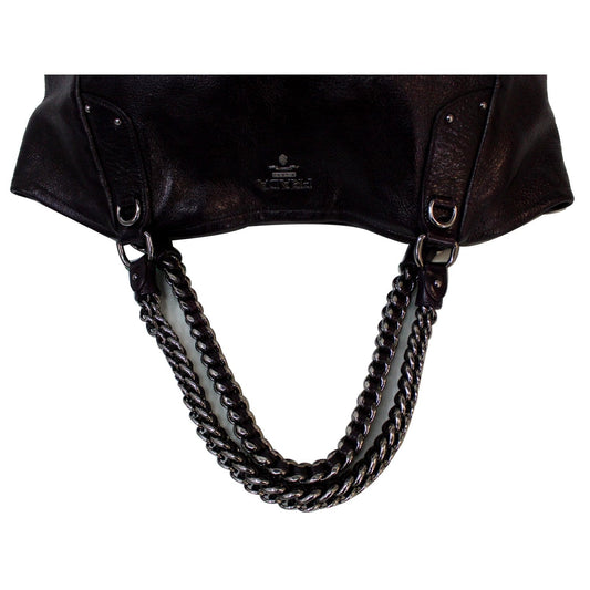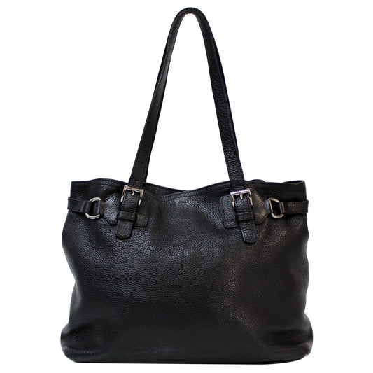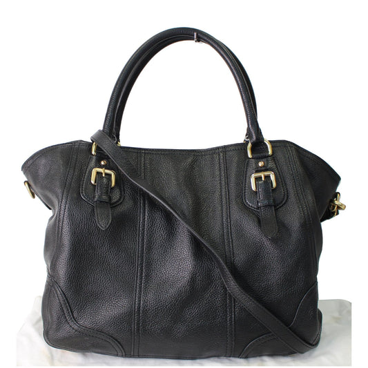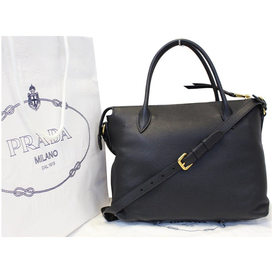 PRADA Daino Medium Leather Tote Shoulder Bag Black