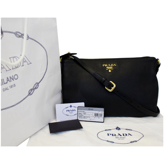 PRADA Vitello Daino Leather Crossbody Bag 1BH050 Black
