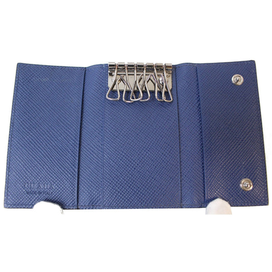 PRADA 6 Key Holder Leather Wallet Blue