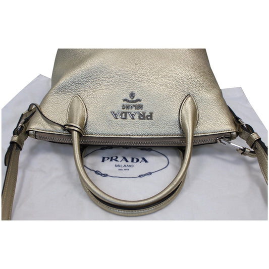 PRADA Small Daino Metallic Leather Tote Shoulder Bag Silver - Last Call