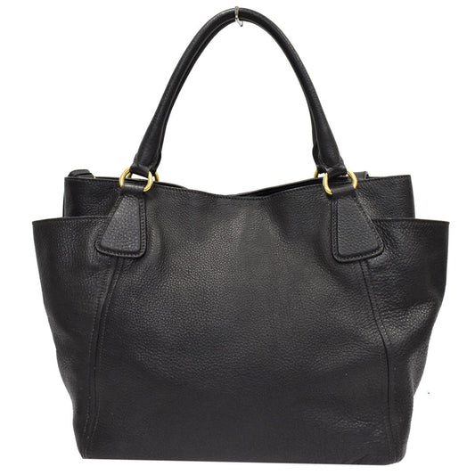 PRADA Vitello Daino Side-Pocket Leather Tote Shoulder Bag Black