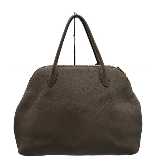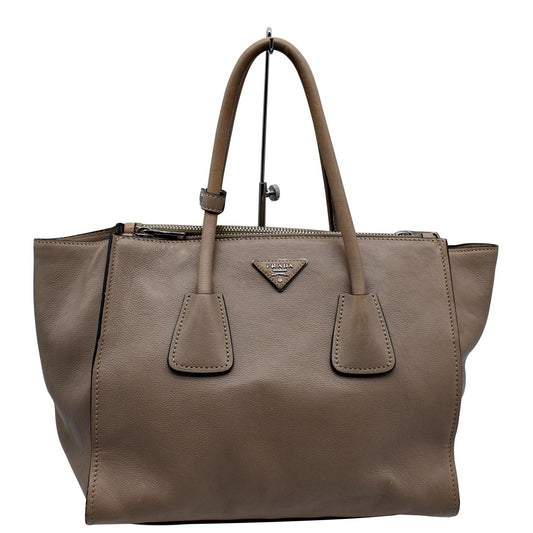 PRADA City Twin Pocket Calf Leather Tote Shoulder Bag Taupe