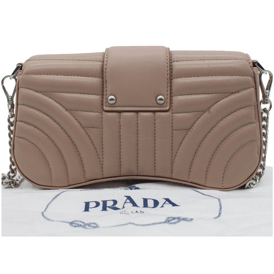 PRADA Nappa Mini Impunture Bandoliera Chain Leather Crossbody Bag Orchidea