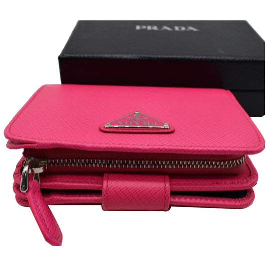 PRADA Small Saffiano Leather Zip Around Wallet Pink