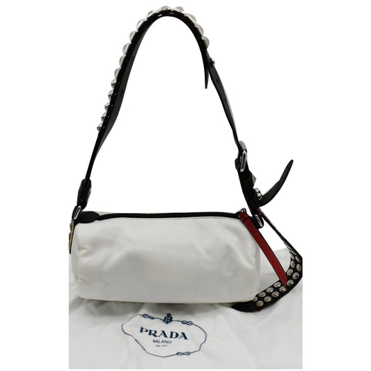 PRADA New Vela Cylindrical Nylon Shoulder Bag White