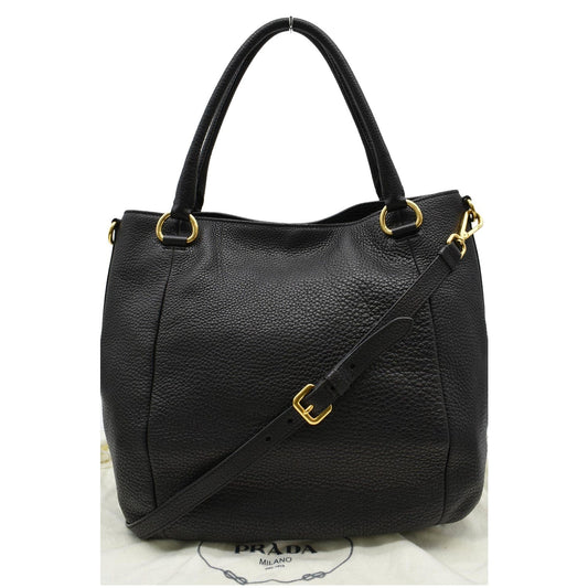 PRADA Sughero Vitello Daino Leather Tote Shoulder Bag Black