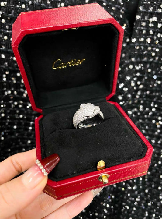 Panthere de Cartier ring in 18k Gold with diamonds and Emerald eyes Size 52
