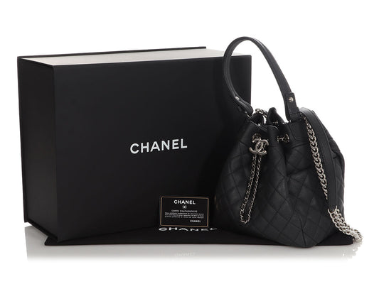 Chanel Small Black Quilted Grained Calfskin Drawstring Bucket Bag