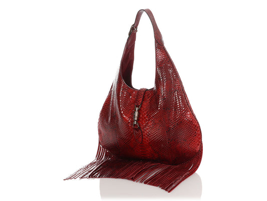 Gucci Red Python Nouveau Ring Jackie Hobo
