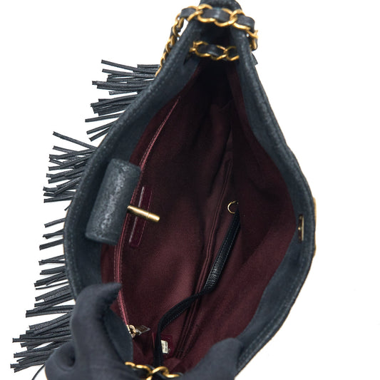Chanel Tassel Hobo Bag Fringed Shiny Calfskin Black Brushed