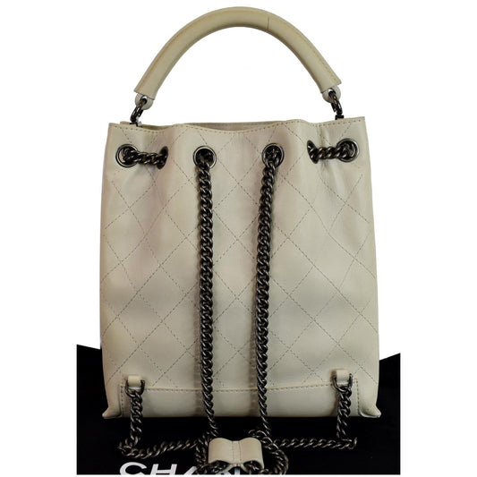 CHANEL Urban Luxury Drawstring Calfskin Stitched Backpack Bag Ivory - 15% OFF