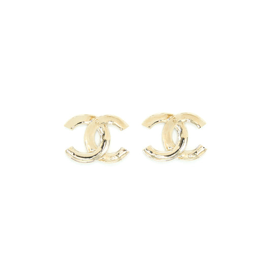 Chanel Giant CC Logo Earrings Light Gold Tone