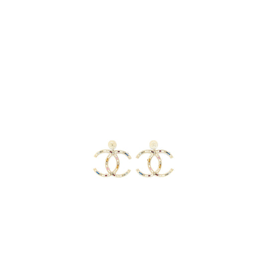 Chanel Giant CC Logo Earring Crystal/Pearl Multicolour Light Gold Tone