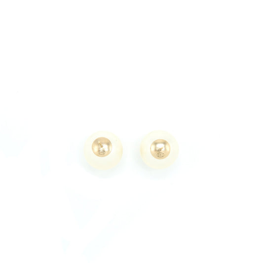 Chanel Giant Pearl Circle Earrings Pearl/Crystal Light Gold Tone