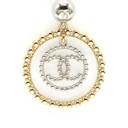 Chanel Giant CC Logo And Round Earrings Silver/Light Gold Tone