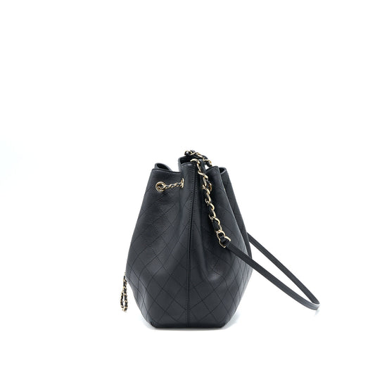 Chanel Drawstring Bucket Bag Calfskin Black L