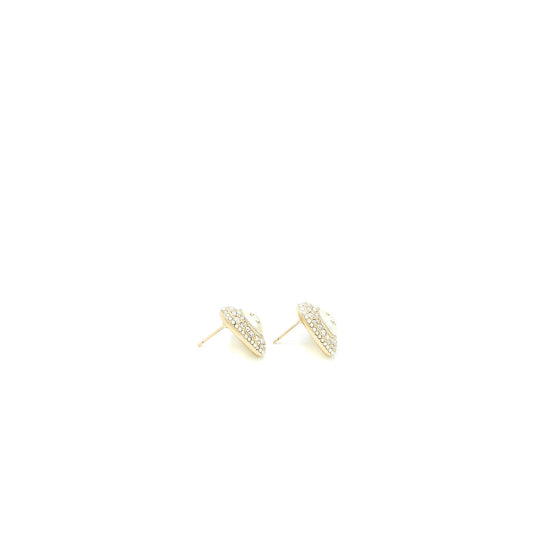 Chanel CC Logo Heart Earrings Crystal/Pearl Light Gold Tone