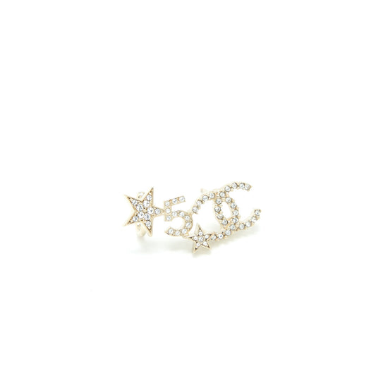 Chanel CC Logo No.5 Star Earrings Crystal Light Gold Tone