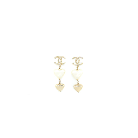 Chanel CC Logo/Heart Drop Earring Light Gold Tone
