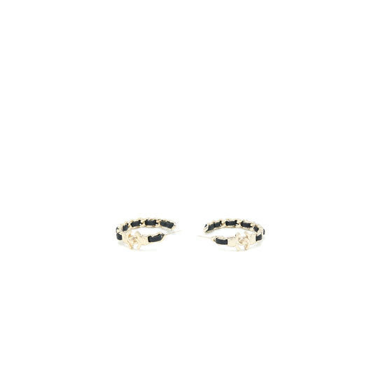 Chanel CC Logo/Leather Chain Small Hoop Earrings Light Gold Tone