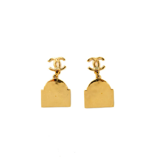Chanel CC Logo Rue Cambon Drop Earrings Gold Tone