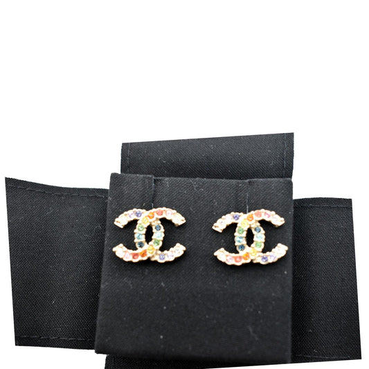 CHANEL CC Over The Rainbow Crystal Earring Gold Multicolor
