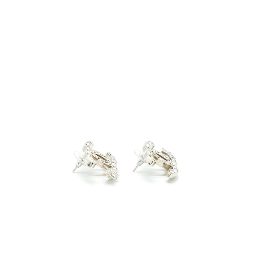 Chanel 22S CC Logo Rainbow Crystal Earrings Sliver Tone