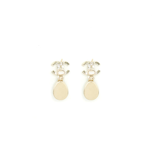 Chanel CC And Crystal Drop Earrings Light Gold Tone