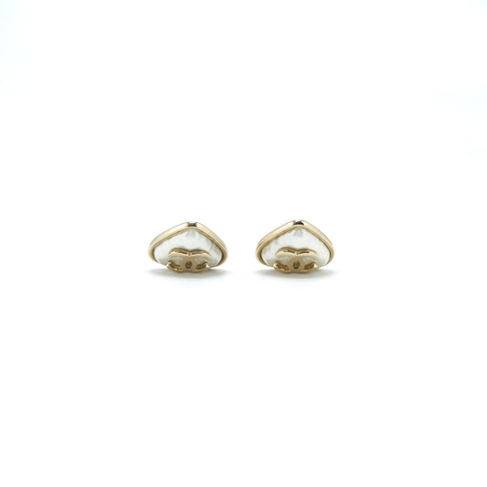 Chanel 22S CC Round Earrings White/ Light Gold Tone