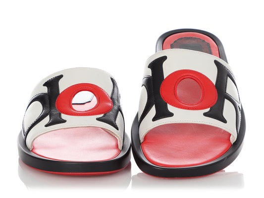 Chanel 22S Black and White Double C Full Logo Slingback sandals
