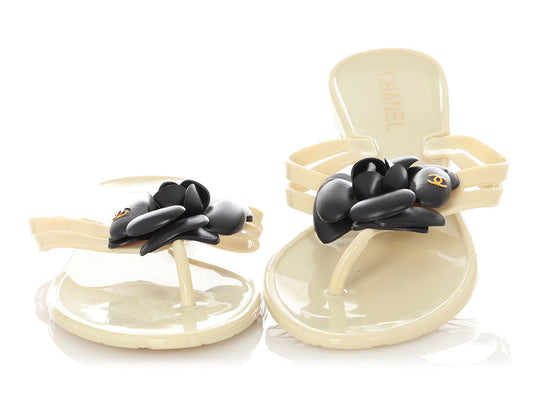 Chanel Cream Jelly Camellia Flower Thong Sandals