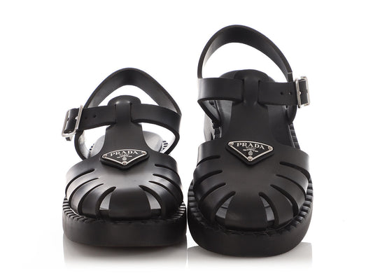 Gucci Black Rubber Chunk Heel Slide Sandals