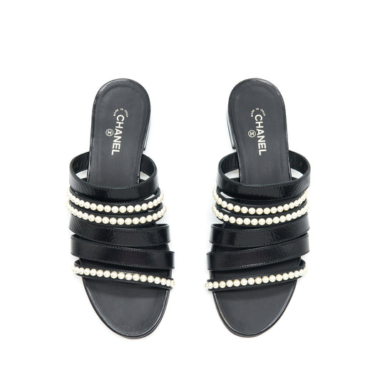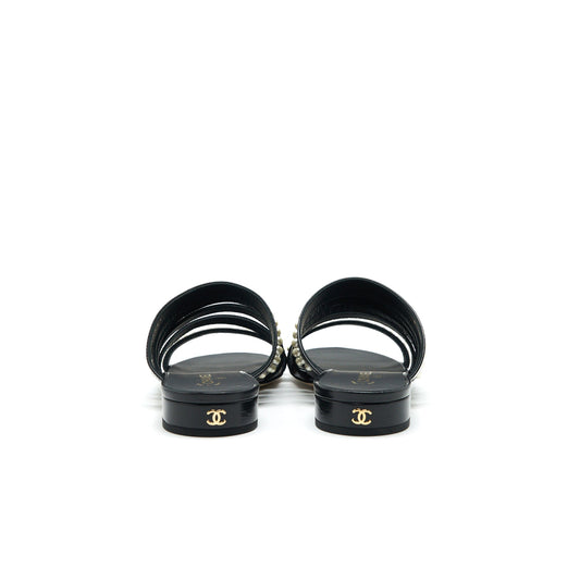 Chanel Size 37 Leather And Pearl Sandal Black