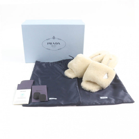 Prada 1XX654 Triangle With logo Sheep fur Sandals