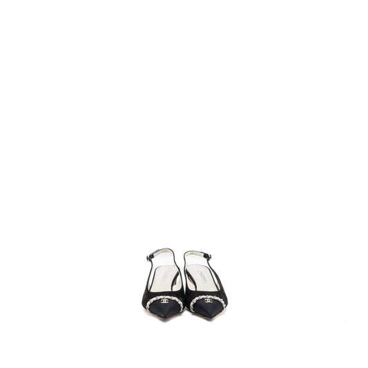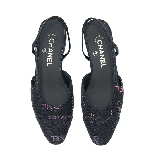 Chanel Size 36.5C Sling Back Flap Shoes Denim/ Leather Black
