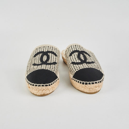 Chanel espadrille beige black shoes 38