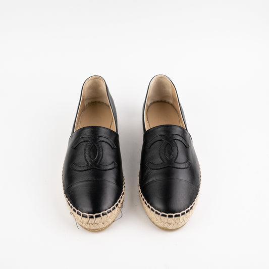 Chanel Espadrilles Size 38 Black Lambskin Shoes