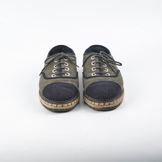 Chanel Espadrilles Lace Up Shoes Dark Green Size 41