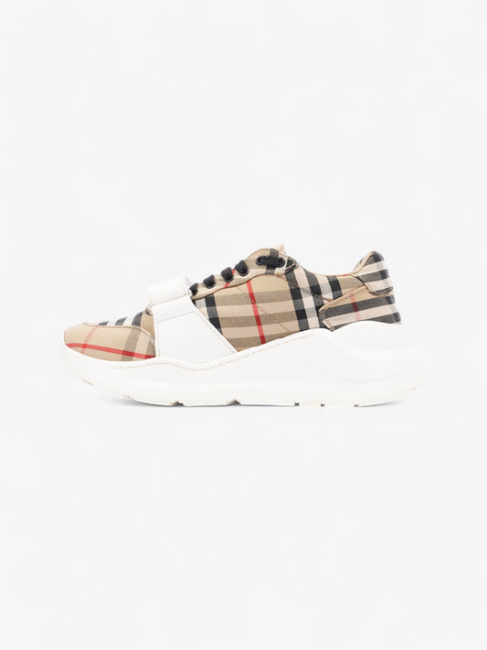 Burberry Regis Sneakers Beige Checkered / White / Black Canvas EU 37.5 UK 4.5